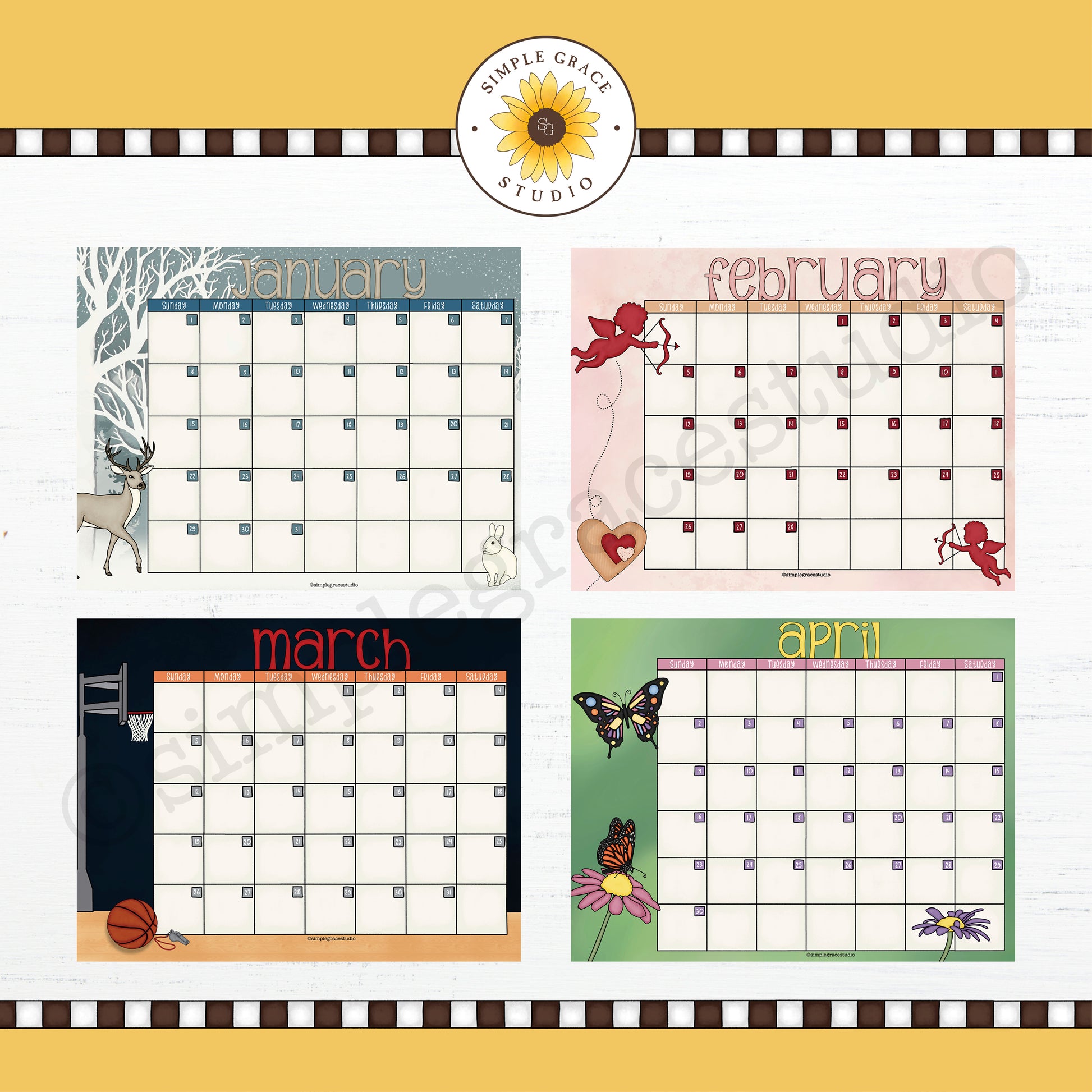 Illustrated calendar, delivered as a password protected PDF for you to print at home. This is for personal and educational use only.