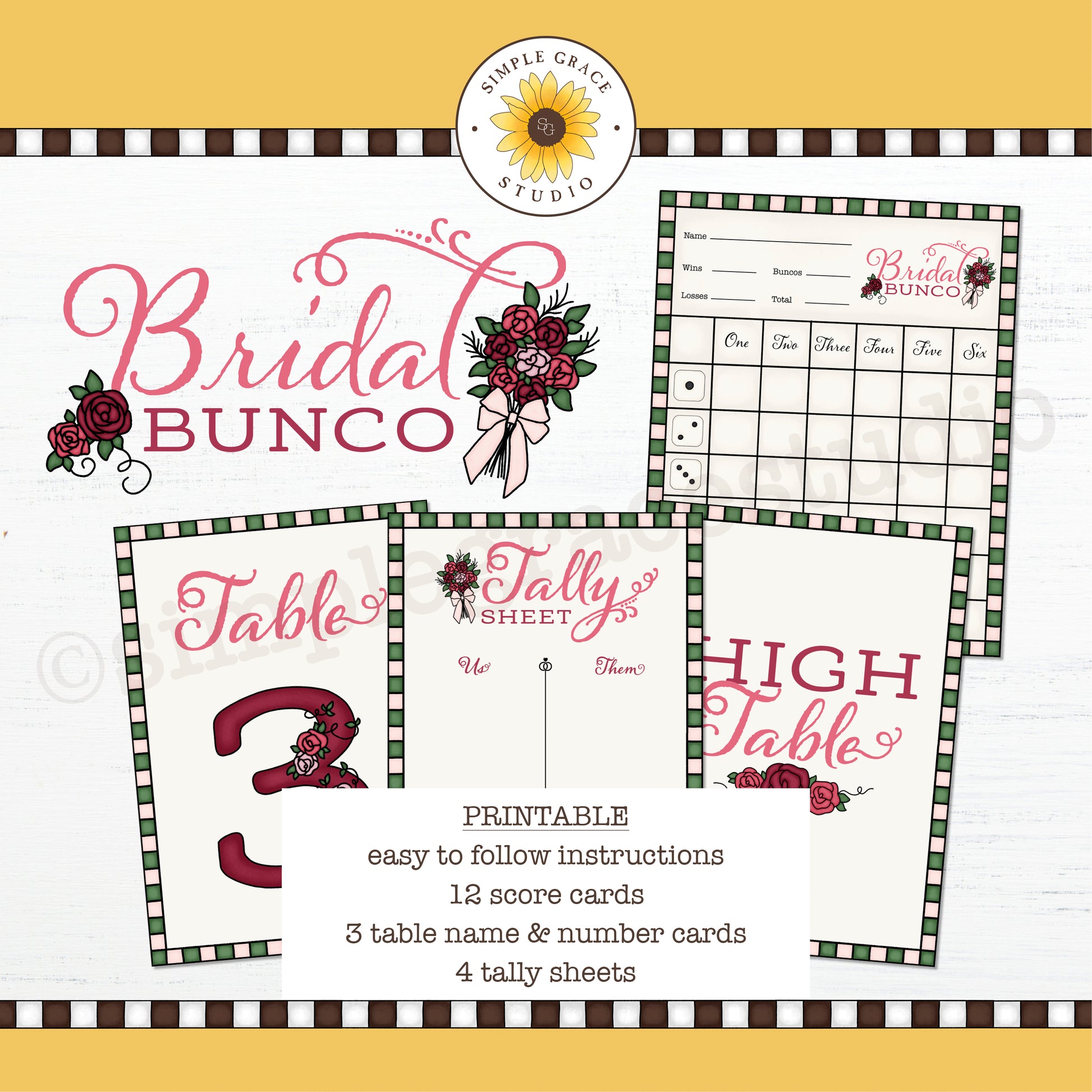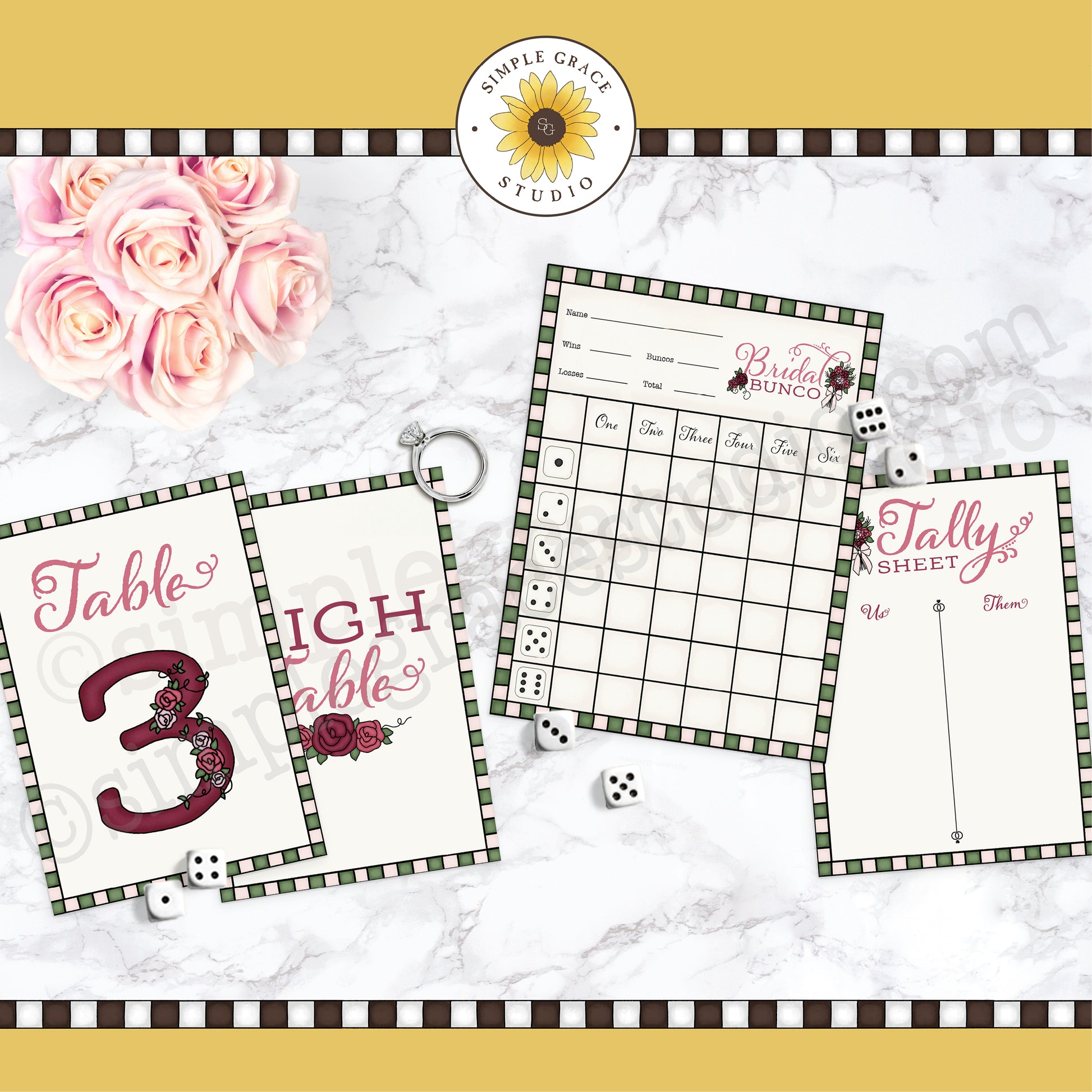 Bunco ~ Bunco Game Set ~ Bridal Bunco ~ Printable Bunco ~ Printable Bridal Bunco