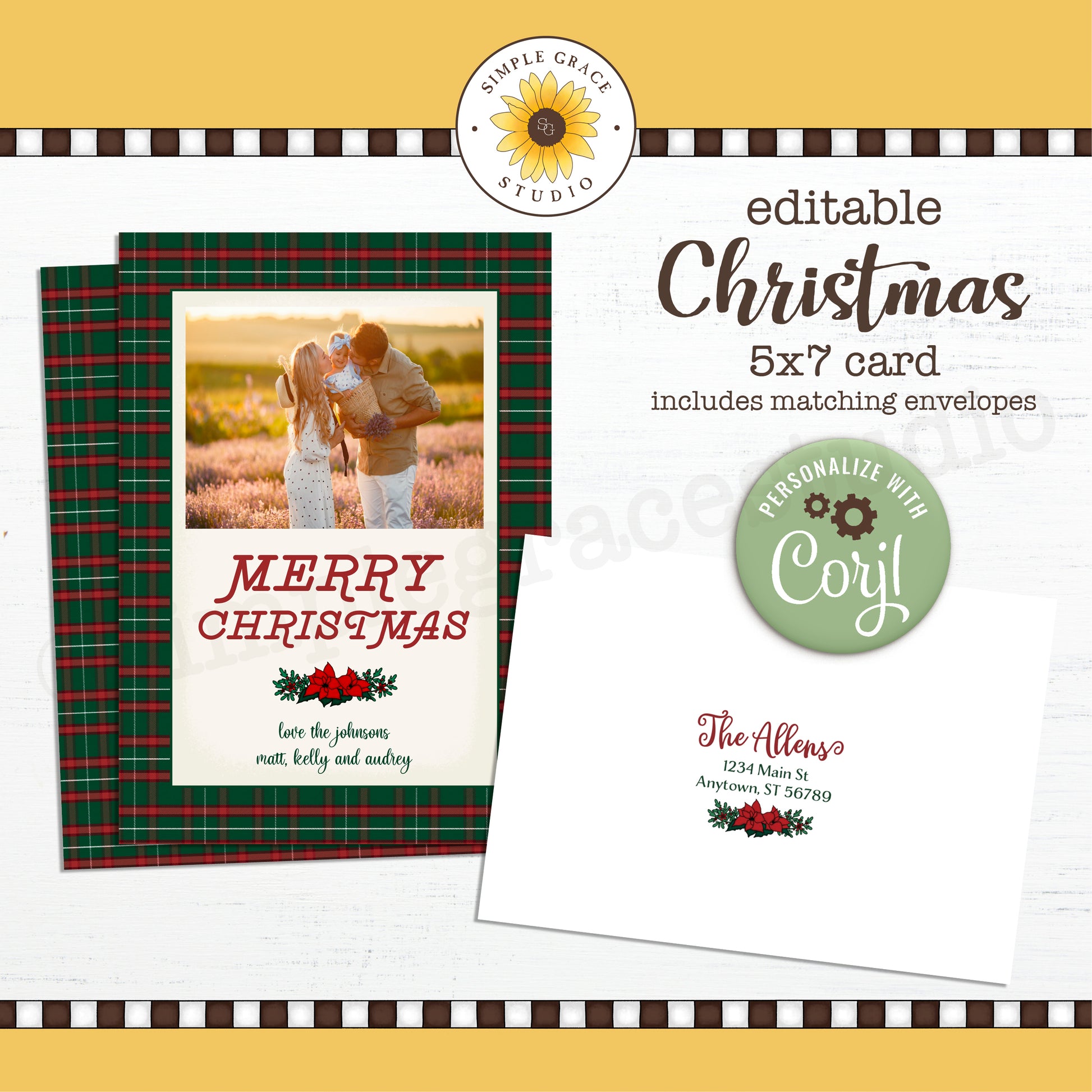 Plaid Christmas Card - Matching Envelopes