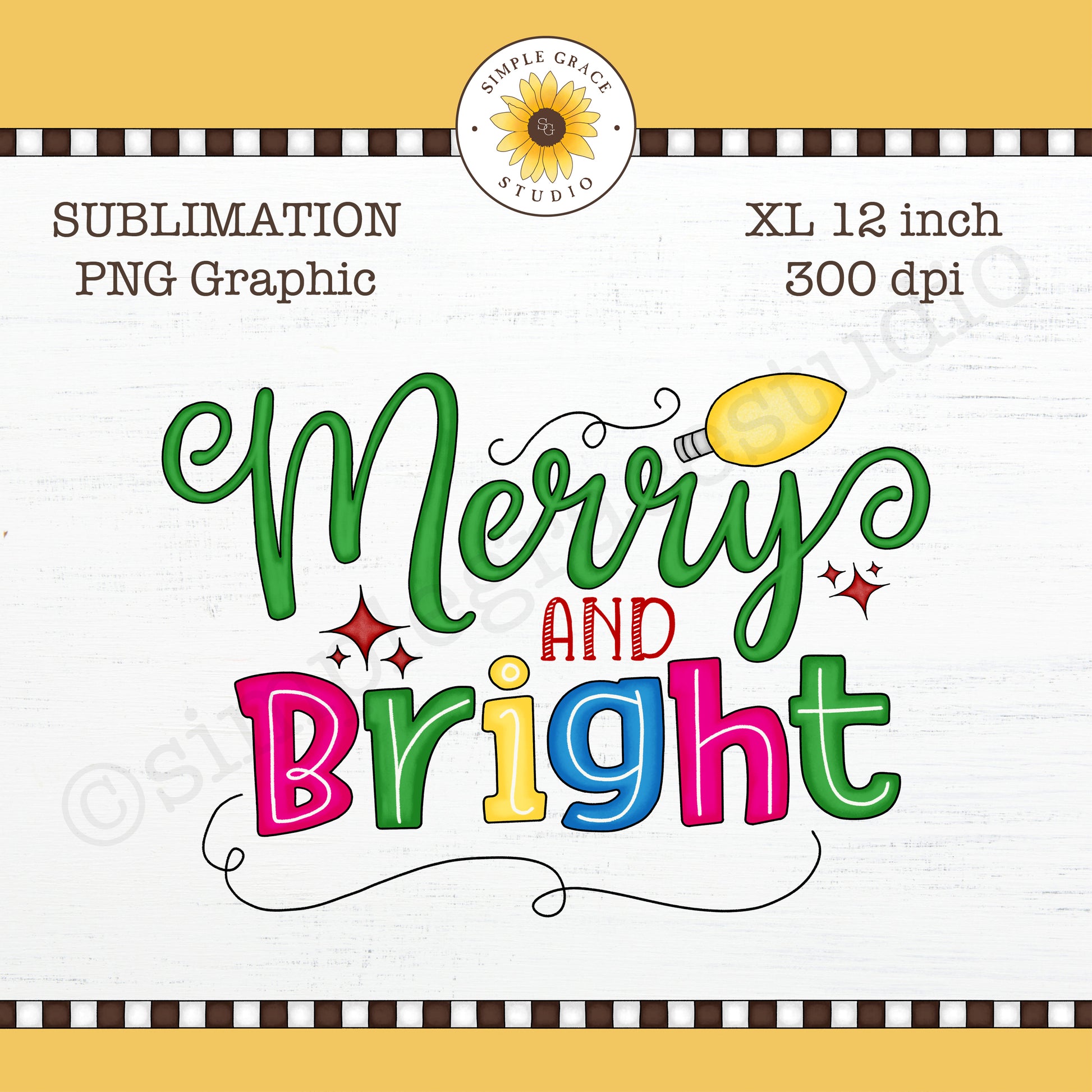 Sublimation Design ~ Merry & Bright ~ Christmas ~ Holiday ~ Clipart ~ PNG