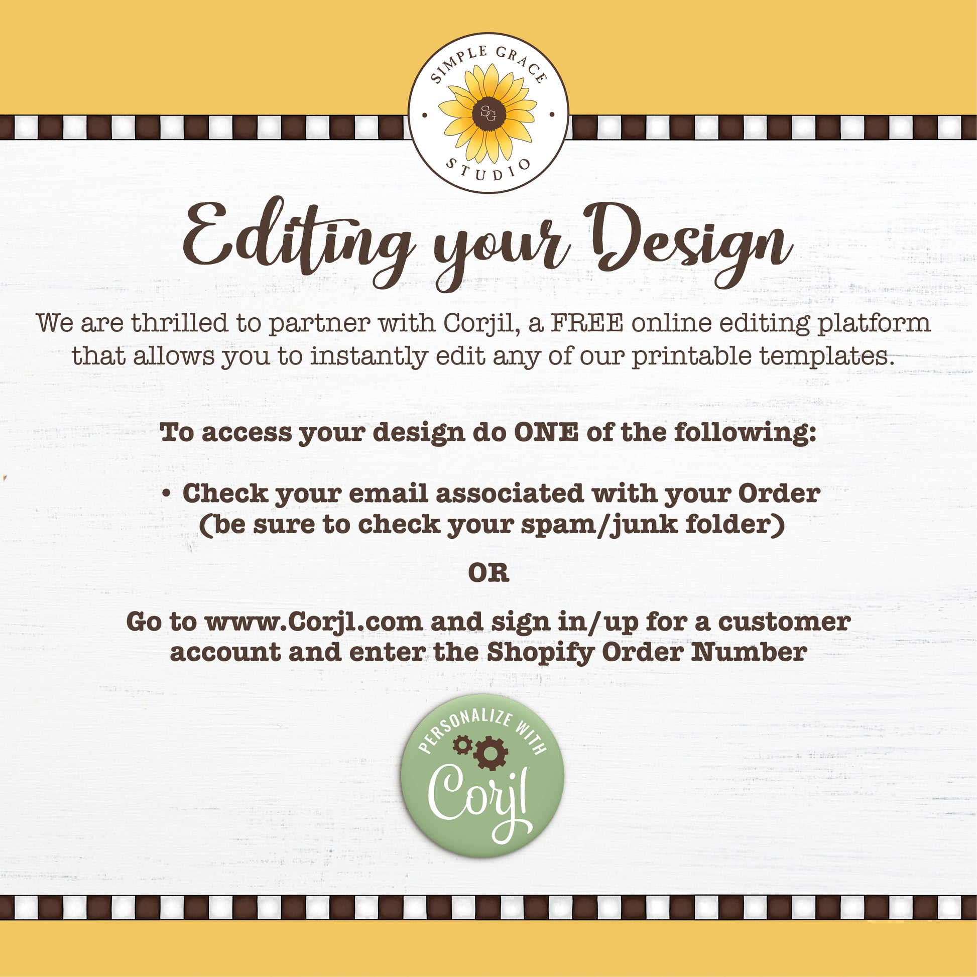 1. Instructions for personalizing your invitation. You can download your PDF after personalizing via Corjl.