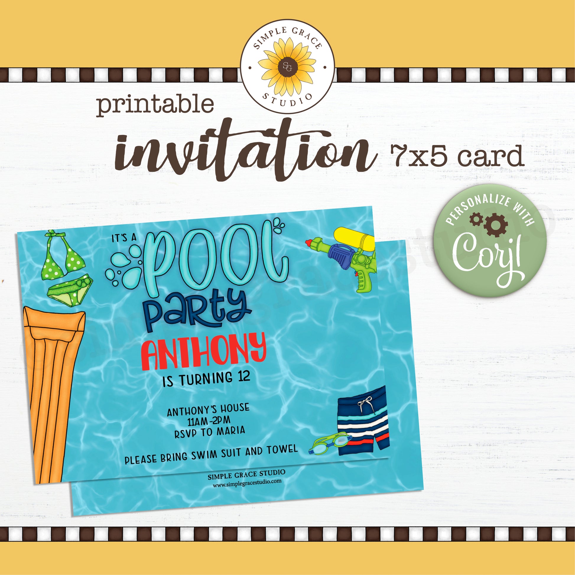 Pool Party ~ Birthday ~ Invitation ~ Party ~ Birthday Party
